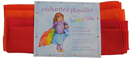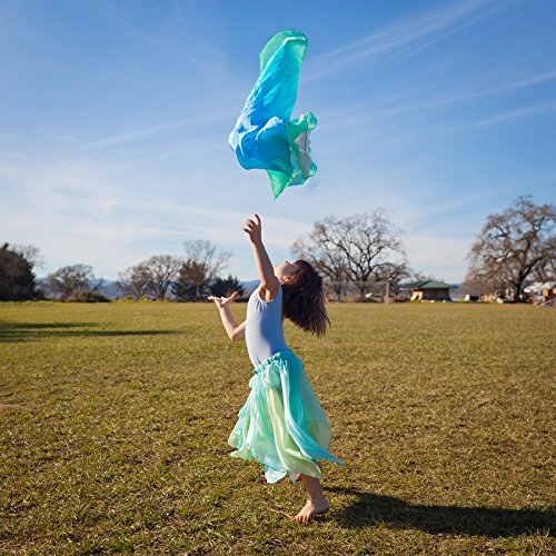 Playsilks, in the hands of children, are truly a bottomless toy chest. There are so many things that children will create with them. When playing dress-up, they will use playsilks to become pirates in one moment and birds in flight in another. Their size and texture make it easy for small hands to fold and tie. Their colors can inspire play using them as grass, sky, and water.Feature