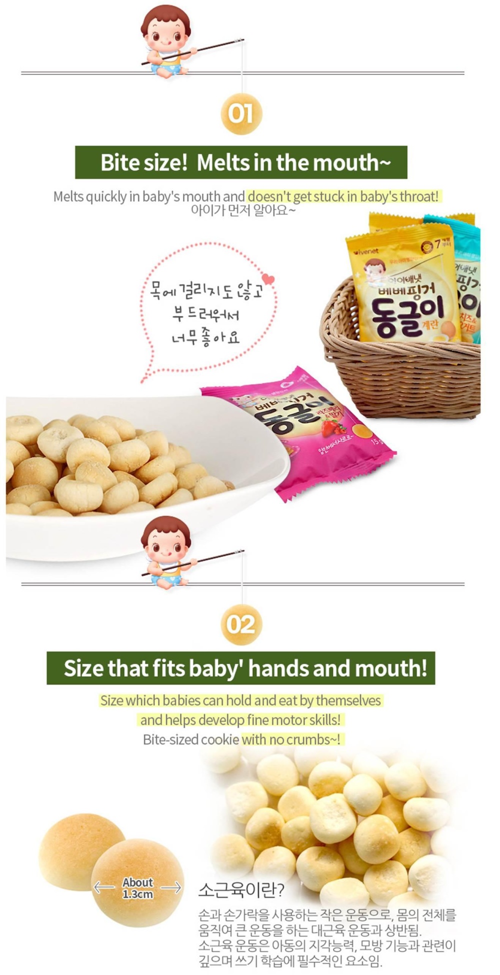 Snack should be given to baby under adult supervision. Ensures snack melts thoroughly in baby’s mouth. Do not feed when your baby is not in upright position. Be sure to check whether your baby has any allergic reactions with this snack.
