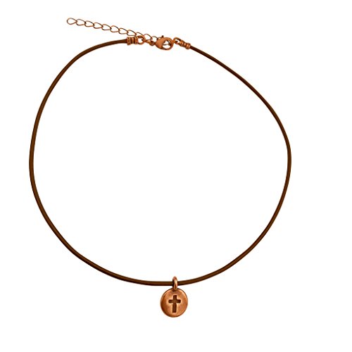 The choker necklace is handmade fine 2mm brown leather cord, made of Greek leather, known for it's softness and durability. The necklace is capped with antique copper plated ends and comes with a lobster claw clasp. The necklace lengths available are 14" and 16", plus a 2" antique copper plated extender chain.