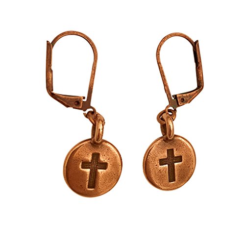 This cross charm jewelry set also comes with matching antique copper plated lever back earrings, each with a copper cross charm.