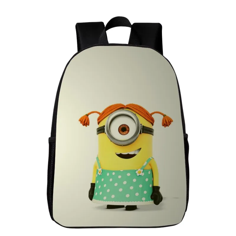 Popular Fashion Polyester 16 Inches Printing Minions Cartoon Black Women Backpack Kids Baby School Bags Student Bookbag Children