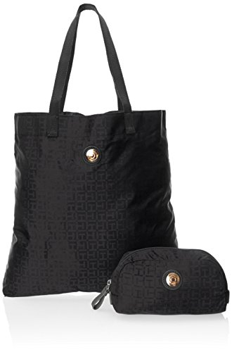 - Title : Tommy Hilfiger Pouch Square Monogram Nylon NS with Pouch Travel Tote, Black Tonal, One Size