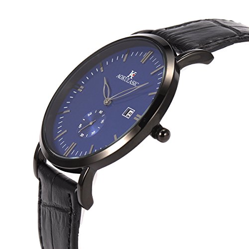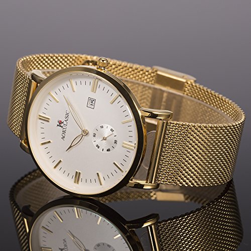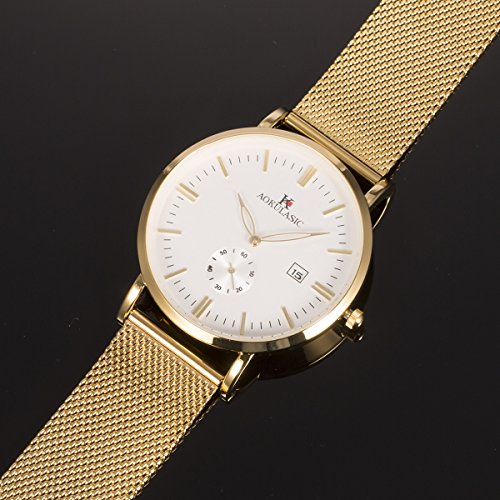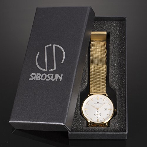 -. Title : SIBOSUN 腕時計 メンズ 日本クォーツ 防水 日付 超薄型 メッシュ ステンレス 鋼 / 本革