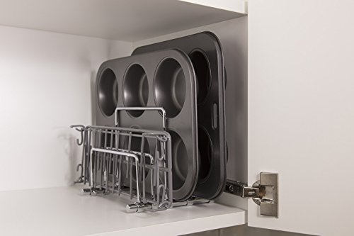 SAVE SPACE IN YOUR KITCHEN. The SbS Organizer Rack is compact and holds items firm in place allowing your chopping racks and bake ware to stand vertically and upright. Allows for easy access and a clean, neat look. Perfect for apartments and RV's.