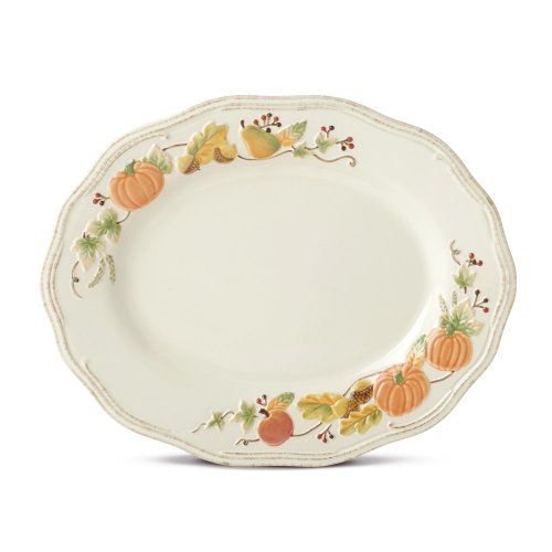Studio : Pfaltzgraff Publisher : Pfaltzgraff Product Description This large platter makes your Thanksgiving presentation complete, it's great for serving main dinner entrees or special brunch dishes like slices of ham or roast beef. Microwave and dishwasher safe. Oval platter measures 14 x 11 inches. 0