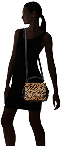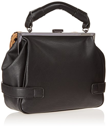 Top clasp closure. Single rolled carry handle. Removable and adjustable crossbody strap. Exterior boasts charming silhouette, polished hardware embellishment and large front zip pocket. Flat bottom supports upright structure. Fully lined interior. Interior boasts back wall zip pocket and brand logo patch. Black/Polka Dot: This product contains Real Fur: printed cow hair calf from China. Imported.