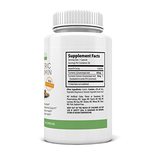 BACKGROUND OF TURMERIC CURCUMIN : Turmeric is created from the roots of the Curcuma longa plant. It is an old Indian spice that has only recently became a highlight herbal supplement for its healing and strengthening antioxidant benefits. Curcumin in Turmeric stimulates the body with antioxidants to neutralize free radicals. Turmeric has one of the highest antioxidant contents and falls within the top ten of the fifty antioxidant-containing foods. Studies have shown it might minimize the effects of joint pains. It also has been shown to reduce inflammation and act as a powerful antioxidant. The effects of Turmeric have been annotated in medical journal and studies. Some of the effects below have been documented about Turmeric Curcumin. 1. ANTI-INFLAMMATORY: Turmeric's power resides inside of the curcumin powder that is stored in the root of the plant, which is medically supported to be a source to help with joint pain and inflammation in over 1,198+ medical studies that we've annotated over the medical community. 2. HEALTHY CIRCULATION AND DIGESTIVE SYSTEM: Helps support digestive & immunity system functions. Turmeric is an all natural stimulant that increases the production of bile in the liver, which helps the body healthily digest fats and expel wasteful body toxins. It can also help you feel less bloated or lethargic after meals.3. STRESS RELIEF: The antioxidant properties inside of Turmeric Increases the body's antioxidant count which improves immunity to illness by expelling waste and toxins. The active natural ingredient in Turmeric is antioxidants. These compounds protect the body's cells from damage caused by free radicals. 4. ANTIOXIDANT POWER: Turmeric's power resides inside of the curcumin powder stored in the root of the plant, which is medically proven to be a source to help with joint pain and inflammation. It helps reduce pain, it's not a substitute for hard pain drugs.