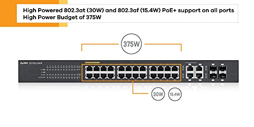 Zyxel 24 Port Gigabit Ethernet Smart Managed PoE Switch with 375 Watt Budget & 4 Gigabit Combo Ports