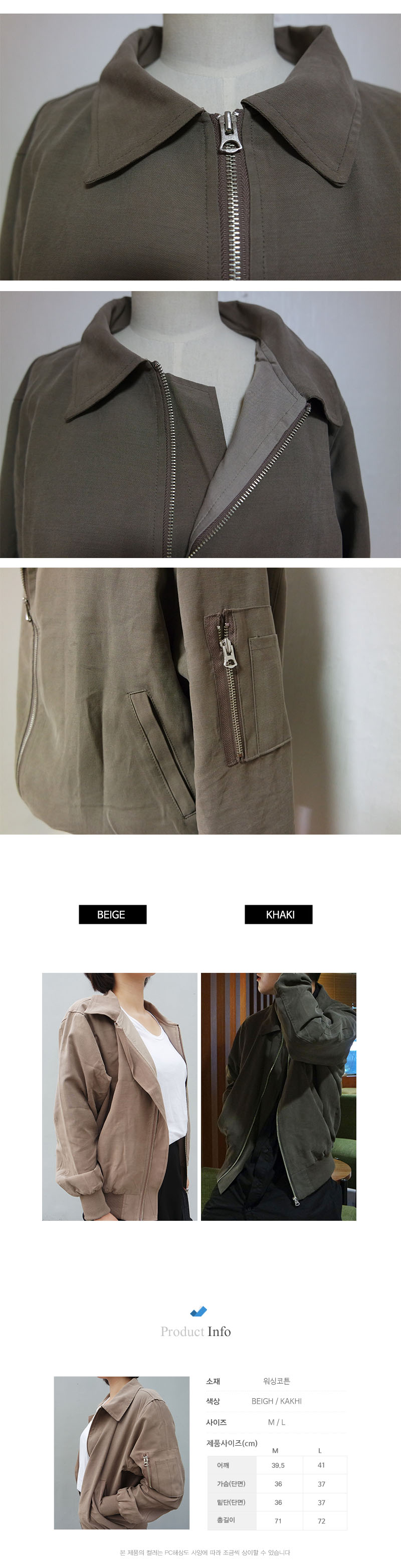 색상은 베이지,카키 총2가지 컬러로 준비되어 있습니다.