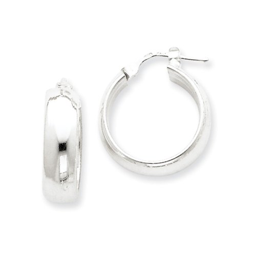 Simplicity offers versatility and timeless appeal. Designed with a hollow domed shape that measures 6mm wide and 20mm (3/4 inch) in diameter, this sterling silver hoop earring is completed with a snap-tight hinged post and a glamorous polished finish.Feature