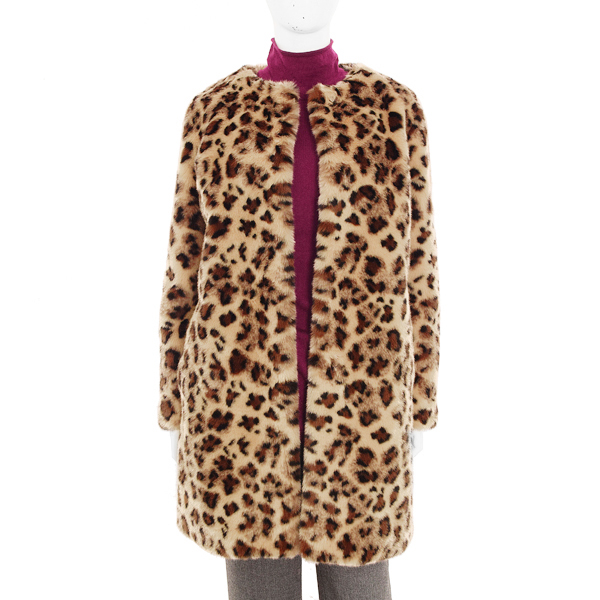 라운드넥의 호피무늬 코트에