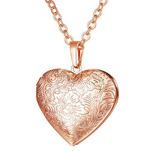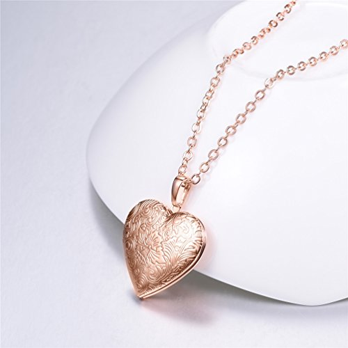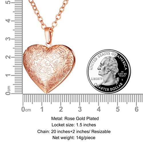 -. Feature : Anniversary/birthday/valentines day present option: Filigree flower engraved heart love photo locket pendant necklace for girls. / Locket size: 3.8CM (1.5 inch), Chain: 20+2 inches / adjustable. 18KGP and U7 stamp on clasp. / Base material: environmental friendly copper. / Hypoallergenic and comfort fit. / Gift Wrapped: Packed in U7 Design gift box, choose Fulfilled by Amazon, you'll get an extra black velvet pouch