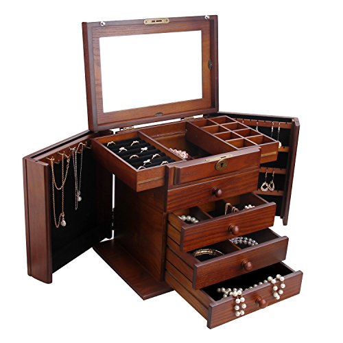 -. Title : Large Wooden Jewelry Box Armoire Watch Storage Case Organizer for Girls