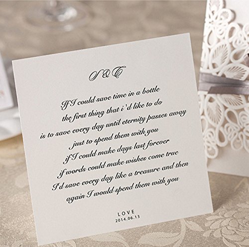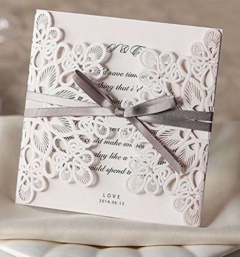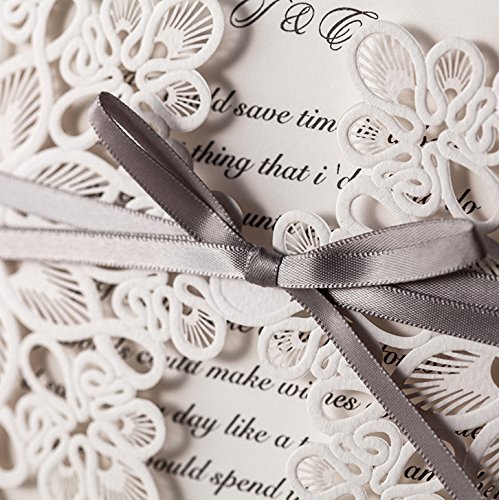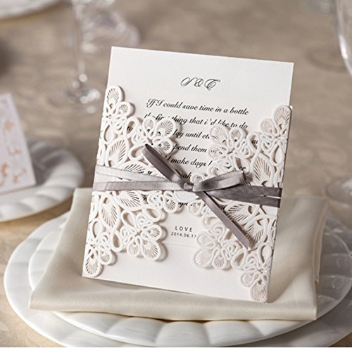Wishmade 50X Laser Cut Flora & Lace Invitations Cards With Ribbon For Wedding Birthday Occasion WM207