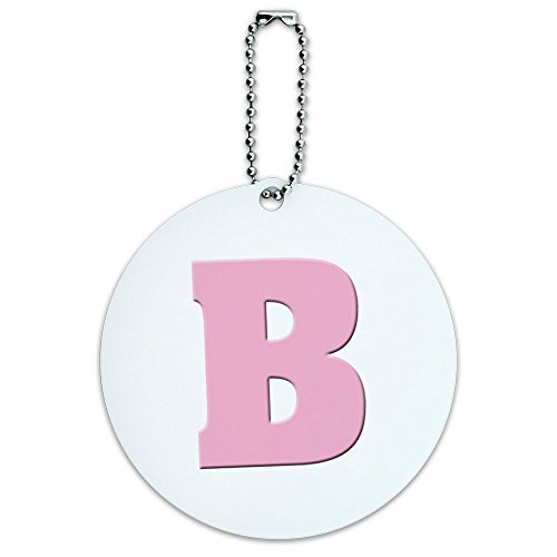 (Graphics and More)/Accessories/Luggage, Bags Travel/DIRECT FROM USA/Letter B Initial Baby Girl Block Font Pink Shower Round Luggage ID Tag Card Suitcase Carry-On