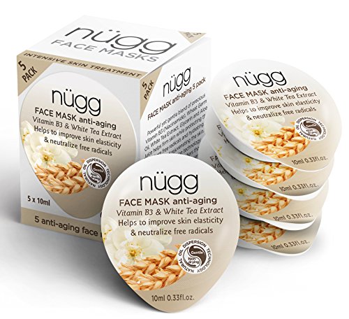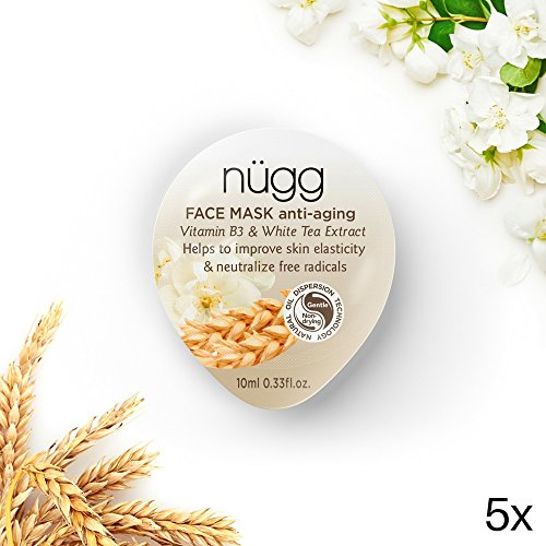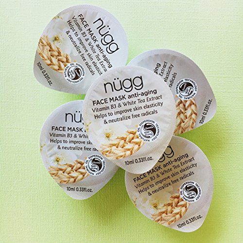 5-pack of nugg Anti-Aging Face Mask capsules will help rejuvenate aging skin for a youthful complexion. Using a powerful blend of Vitamin B3, Wheat Germ Oil, and White Tea Extract, nugg Anti-aging face masks help firm the skin and gently reduce the appearance of fine lines. The single use face mask pods protect the face masks from oxidation, are easy to use, and perfect for on-the-go and thus make for perfect travel size beauty products. Apply content of entire mask pod on face, neck and back of hands, leave for 10 to 15 minutes and remove with damp washcloth or rinse off. Use this nugg anti aging face mask twice a week or as often as desired.Feature