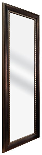 The MCS 12 inch by 48 inch deluxe series of over -the -door mirrors are framed with classic moldings with foil finishes. The overall size of the mirror measures 18 inches by 54 inches and can be hung easily over most any door without additional hardware or fasteners. The mirror itself is 12 inches wide by 48 inches long. The set of over- the -door white hooks (included) can be adjusted to different lengths. Model 47705 has a 2.75 Inch wide frame molding with a bronze look with champagne accents.Feature