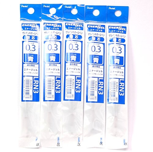 Pentel 0.3mm Blue Ink Refill (XLRN3-C), for EnerGel Retract Ballpoint Pen(BLN73-C), × 5 Pack/total 5 pcs (Japan Import) [Komainu-Dou Original Package]