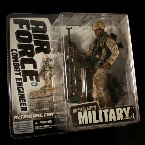 -. Feature : AIR FORCE COMBAT ENGINEER * AFRICAN AMERICAN VARIATION * McFarlane's Military Series 4 Action Figure & Display Base / Height: 6" tall on highly detailed base. / Articulation: Neck, shoulders, wrists and right elbow. / Equipped with M4A1 carbine and AN-PSS-12 metallic mine detector. / Originally released in 2006 - OUT OF PRODUCTION / RETIRED