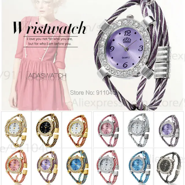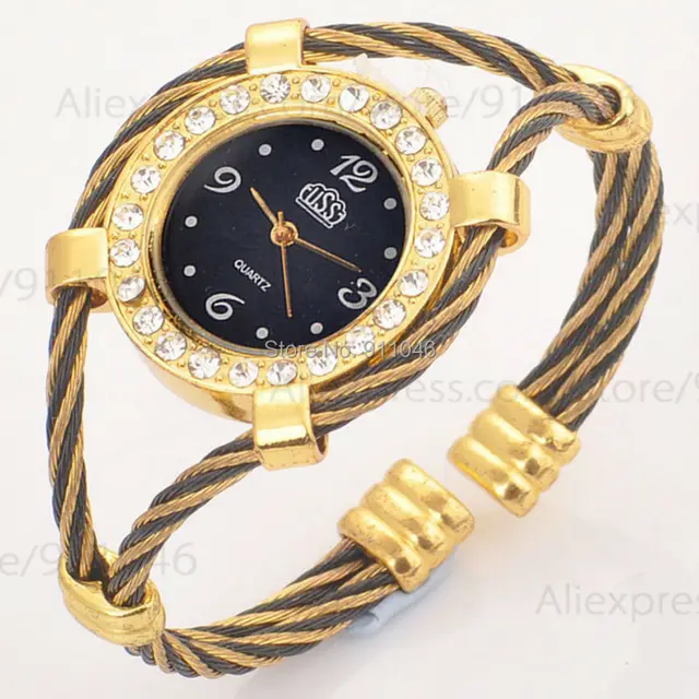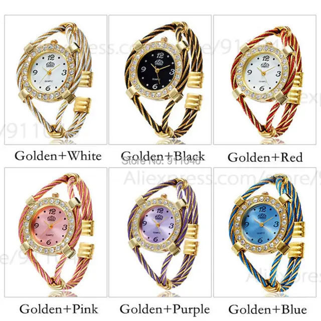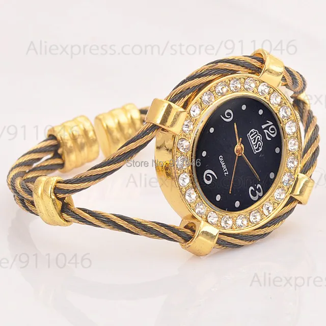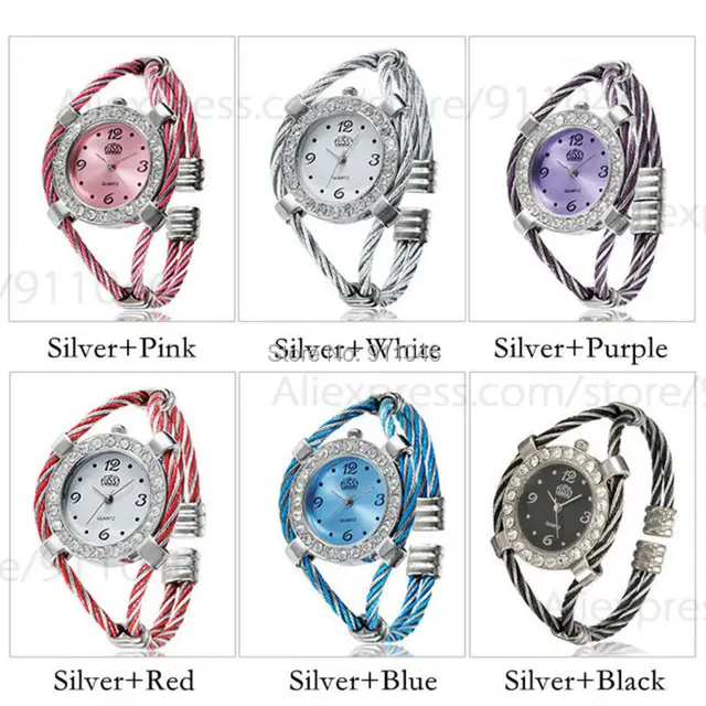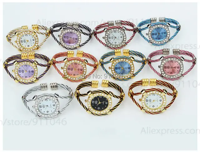 | [해외] 100 개/몫 패션 여성의 팔찌 시계 크리스탈 와이어 스틸 아날로그 석영 팔찌 시계 도매 |