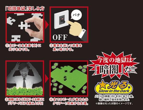 絵柄は無く暗闇に光るピースだけを頼りに組む、難易度の高いパズルです。