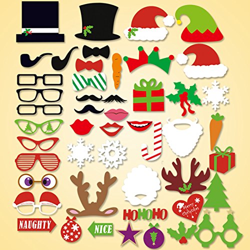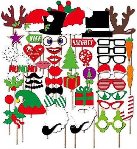 Zolee 50pcs Christmas Photo Booth Props Mustache DIY Kit – Eve Supplies Dress-up Accessories On Sticks (Christmas 50pcs)