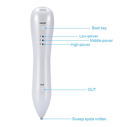 -. Feature : SAFE COMFORTABLE: fast to remove the freckle, age spot and flat moles without any side effects,can be achieved quickly safe and side effects of medical cosmetic results / RELIABLE AND CONVENIENT: It has 3 adjustable scan spot power output for 3 kinds of intensity different treatment, lower level is used on spot and freckle,strong level is used on mole and skin tags,which is useful. / WIRELESS OPERATION: It use new generation of plasma micro district discharge technology with low temperature and high frequency. / UNIQUE ELECTRIC ION TECHNOLOGY: this spot removal pen adopts using high-tech, electric ion carbonation functions makes it remove spots without hurting the normal skin, no bleeding and little pain. / EXTENSIVE USE: remove spots,remove freckles,remove pigments,remove aging spots,lighten all spot areas,reduces visible skin pores,easy to carry,Can be home beauty salon use