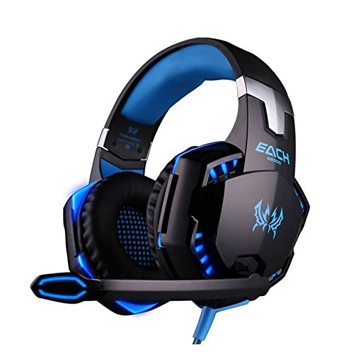 Gloriest Fashion Gaming Headset Game Headset Headphone EACH G2000 Professional Noise Canelling 3.5mm PC Stereo Headband Headsets with MIC Volume/LED Lights/Voice Control Microphone HiFi Driver For Laptop Computer Skype Online Chatting - Blue