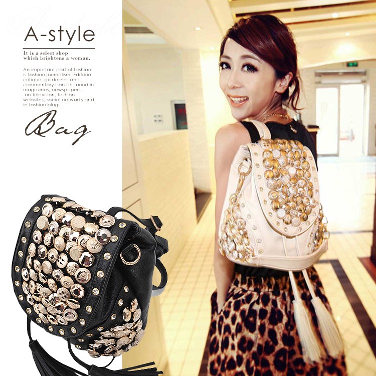【売り尽くしセール】『大人気』『再再々入荷』2WAYキラキラボタン付きリュックサック(バッグ/レディース/新作/ブラック/ベージュ/BAG/ショルダー/人気/ボタン)『合計4980円税別以上で送料無料』