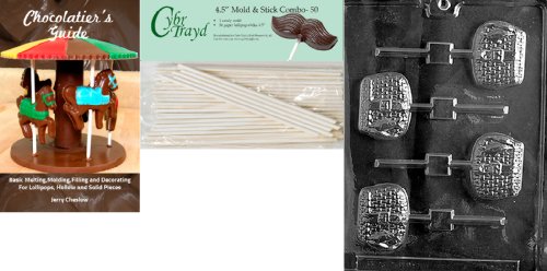 Cybrtrayd 'Fishing Basket Lolly' Sports Chocolate Candy Mold with 50 4.5-Inch Lollipop Sticks and Chocolatier's Guide