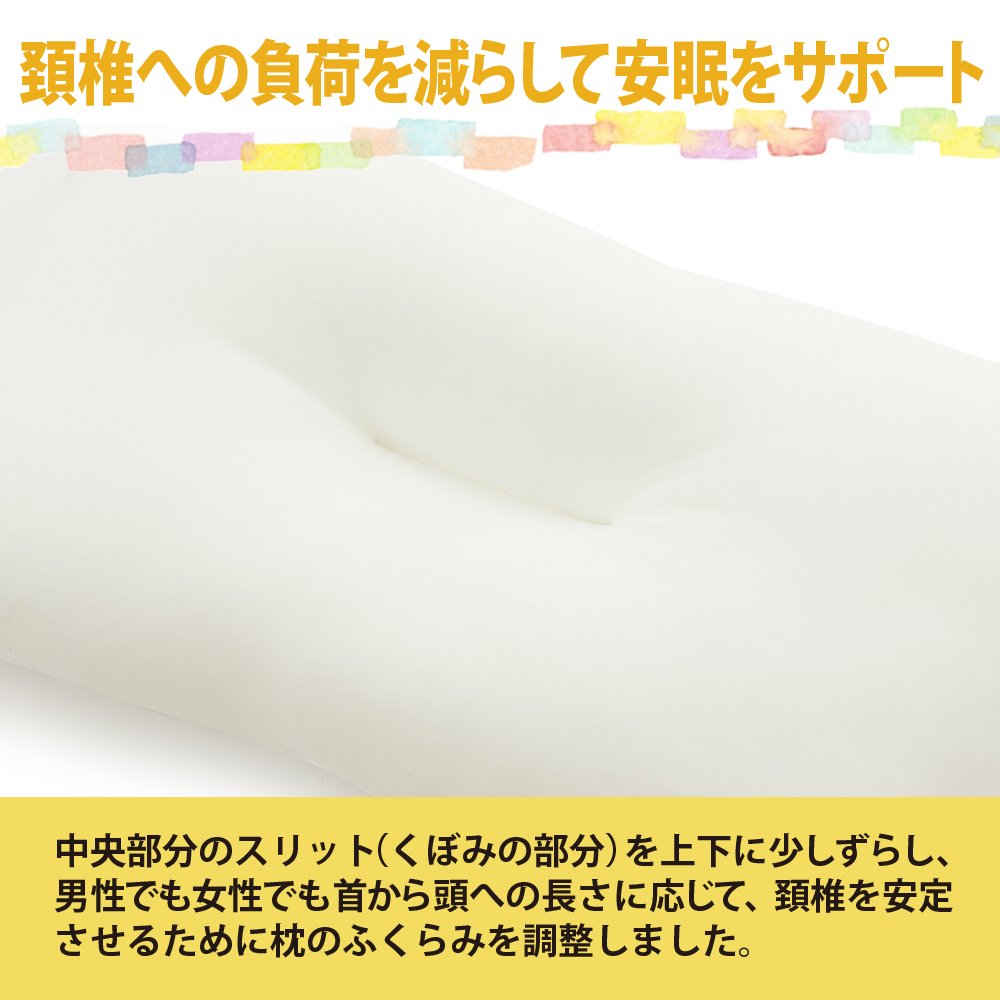 The slit in the center part (the part of the indentation) is slightly shifted up and down, and even for men and women, the pillow bulge was adjusted to stabilize the cervical spine according to the length from the neck to the head.