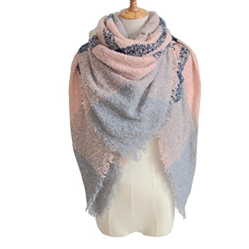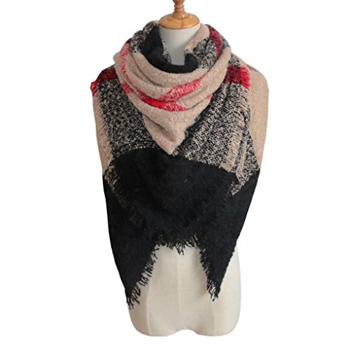 (SUKEQ)/Accessories/Scarves/DIRECT FROM USA/Plaid Blanket Scarf, SUKEQ Stylish Women Cotton Blend Square Scarf Winter Warm Large Tartan Che...
