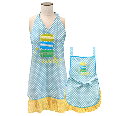 Two's Company Women's & Girl's Sweet Treat 'Sweets & Sweety Embroidered Polka Dot Cotton Apron Set, Light Blue