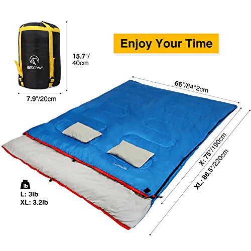 (REDCAMP)/Camping Hiking/Sleeping Bags/DIRECT FROM USA/Outdoor Sleeping Bag with Pillow for Camping,3-season Comfort 50°F/10°C,Blue 2lbs Filling with ...