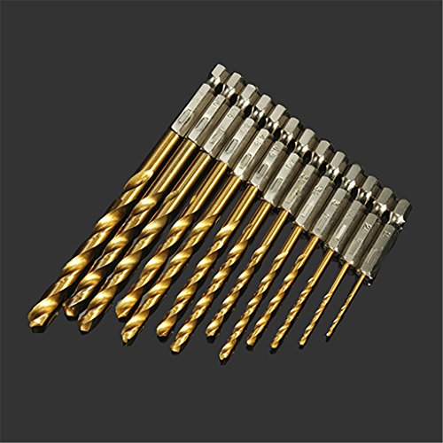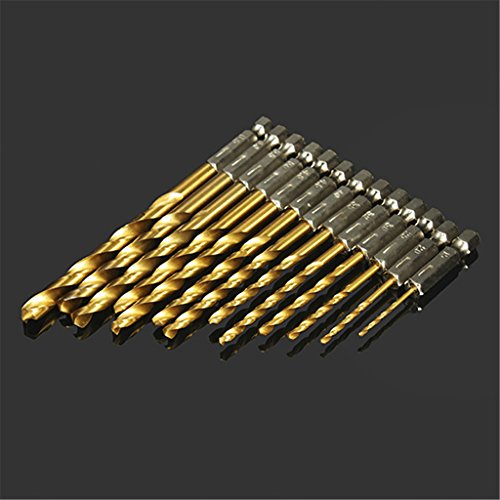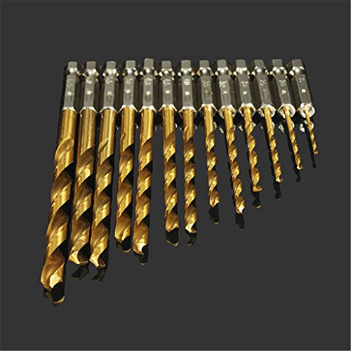 DAOKI 13pcs 1.5-6.5mm HSS Titanium Coated 1/4 Inch Hex Shank High Speed Steel Drill Bit Set