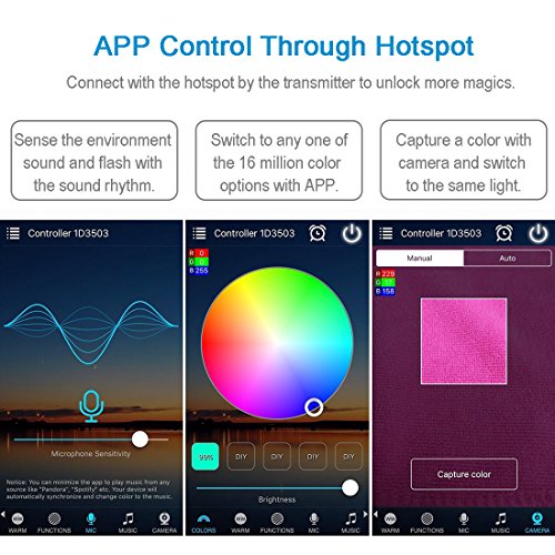 - Let the Lights Dance with Music -- With this smart controller, control the light with your smart phone, then the lights can flash to sync with music melody or other rhythm.
