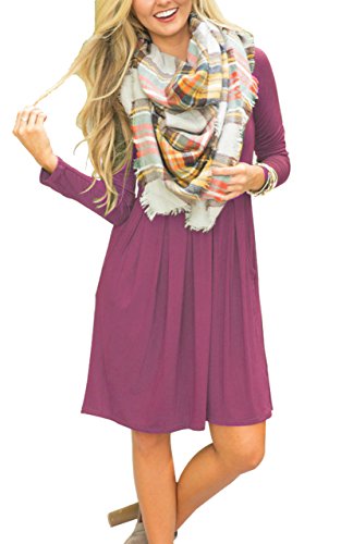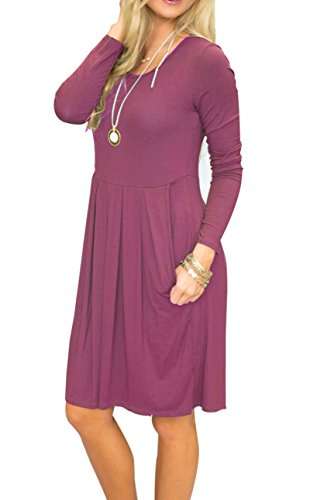 AUSELILY Women's Long Sleeve Casual Loose Swing dress with Pockets.