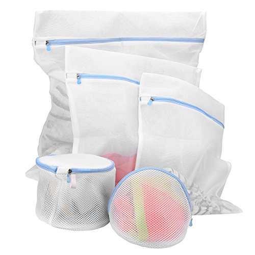 CozyCabin Set of 5 Fine Mesh Laundry Bags (1S+1M+1L+2 Bra Bags),Underwear Lingerie Delicates Laundry Wash bags,Travel Laundry Bag