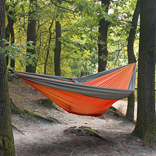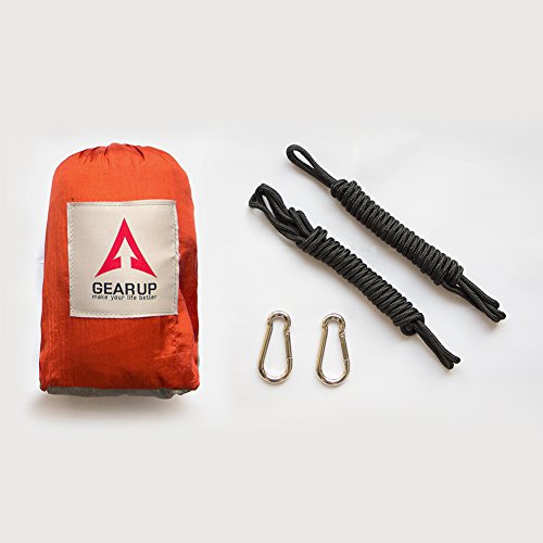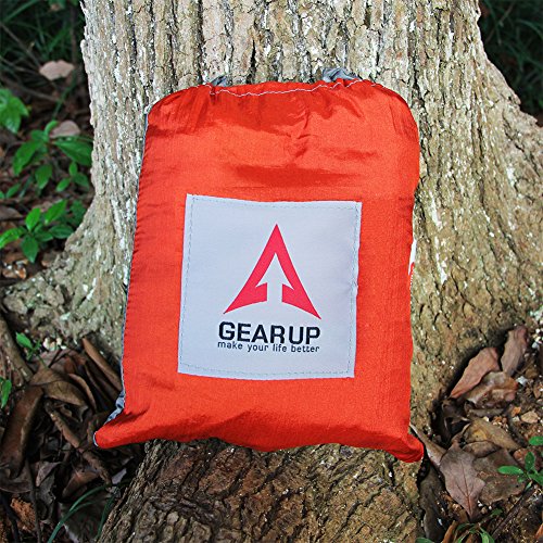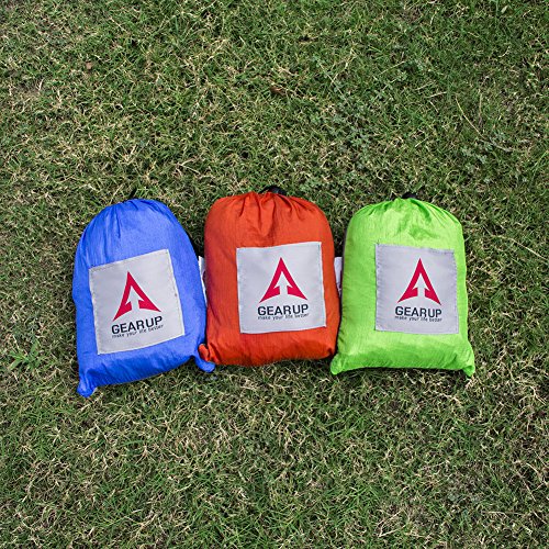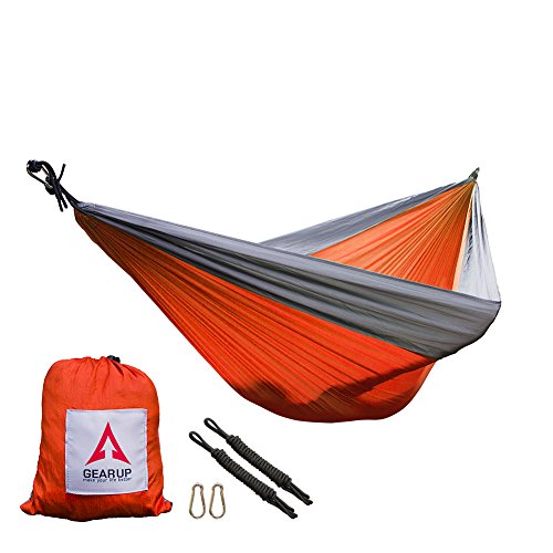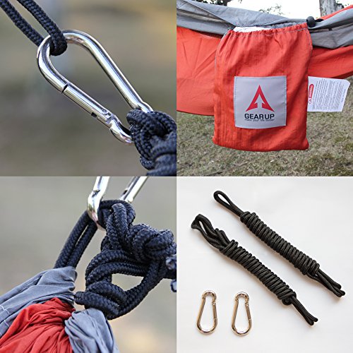 HIGH QUALITY & DURABLE. GEARUP Double Camping Hammock made of breathable 100% 210T nylon fabric, triple stitching, safely support a maximum capacity of 500LBS.