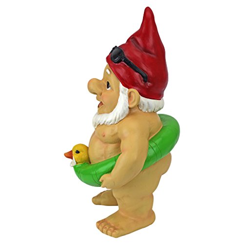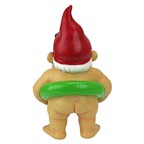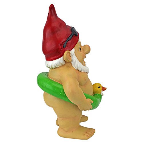 Garden Gnome Statue - Pool Party Pete Naked Gnome - Outdoor Garden Gnomes - Funny Lawn Gnome Statues