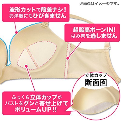 盛れると話題の「超盛シリーズ」に、ふんわりとした優しいイメージが魅力の大人可愛い花柄が登場♪通常のブラよりサイドが高めの脇高設計に、下部が厚くなったふかふか立体カップのW効果で驚きの谷間に出会えるはず♪表面がつるんとしていて肌触りが良く、表裏ともシームレス加工のためTシャツなどにも響きにくいのが嬉しいポイント♪リピーター続出中の、一度着けたらやみつきになるアイテムです★