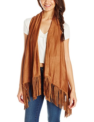 Drapey, open front suede vest with fringe and perforated racerback