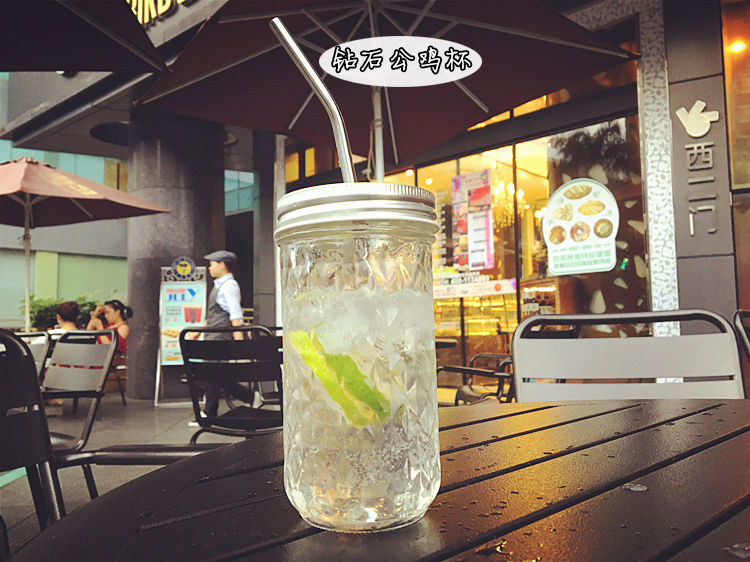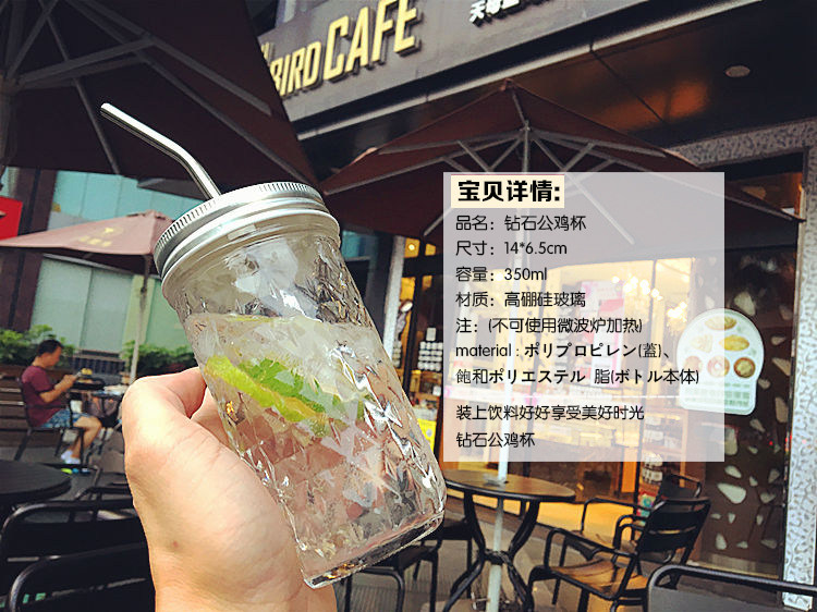 韩国菱形钻石吸管果汁饮料公鸡杯个性浮雕简约透明咖啡厅玻璃杯子