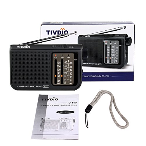 TIVDIO V-117 Portable Shortwave Radio with AM/FM Support Battery Powered Transistor(Black)