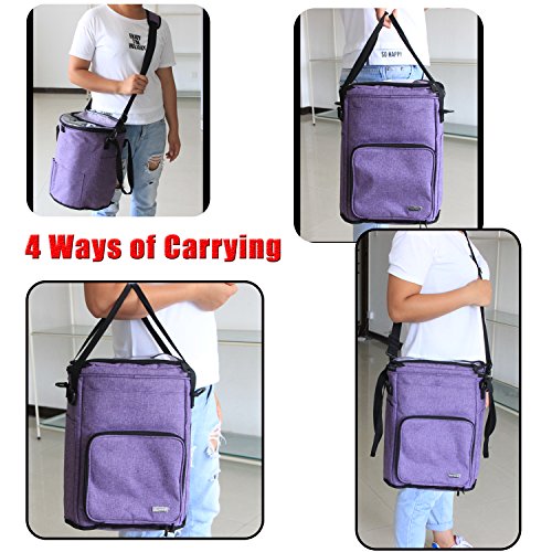 Teamoy Knitting Tote Bag, Yarn Storage Organizer with Inner Dividers for Yarn, Unfinished Projects, Crochet Hooks, Knitting Needles and Other Supplies, High Capacity, Well Designed, Purple