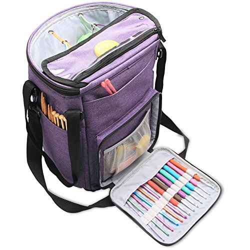 MULTIPLE POCKETS: Additional compartments designed to hold crochet hooks, knitting needles and other knitting supplies. Keep all you need in one place and easy to carry.