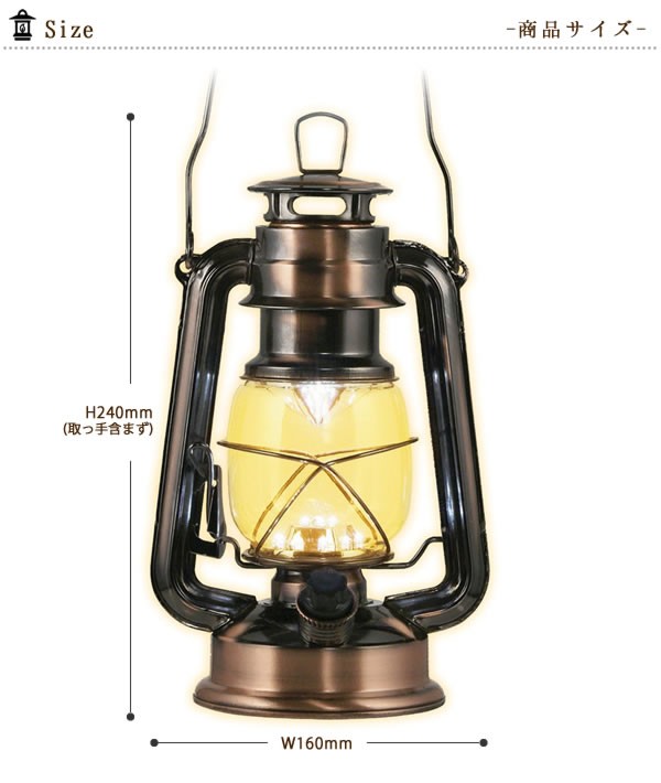 | <h1>レトロ調/照明/明るさ/調節/調光/エコ/災害対策品/アウトドア/置き型/ぶらさげ/吊下げ/取っ手付き/メタル調/銅色/ブロンズ</h1> |