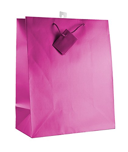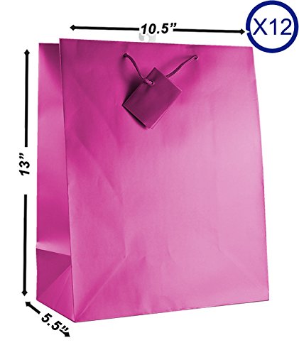 12-PC Solid Color Gift Bags, Matt Laminated, Hot Pink Color