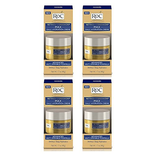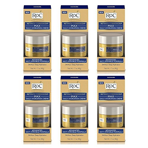 Reveal younger-looking skin and visibly reduce wrinkles with RoC Retinol Correxion Max Daily Hydration Anti-Wrinkle Crème. This intensive hydrating moisturizer is clinically proven to reduce wrinkles in one week with continued improvement each week thereafter. Its advanced anti-wrinkle formula delivers smoother and more radiant skin after one week, smooths under eye wrinkles after four weeks, and visibly reduces deep wrinkles and dark spots after eight weeks. Formulated with hyaluronic acid, the anti-wrinkle cream also adds line-plumping moisture to help your skin look replenished and leave it deeply hydrated for 24 hours. RoC technology ensures the hydrating retinol formula will not lose its effectiveness in the jar. And thanks to its oil-free and non-comedogenic formula, this anti-aging treatment smooths the appearance of wrinkles and fine lines without clogging your pores.Feature