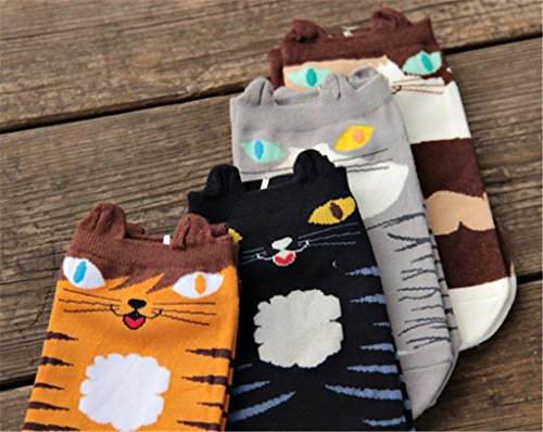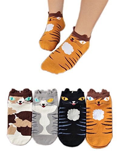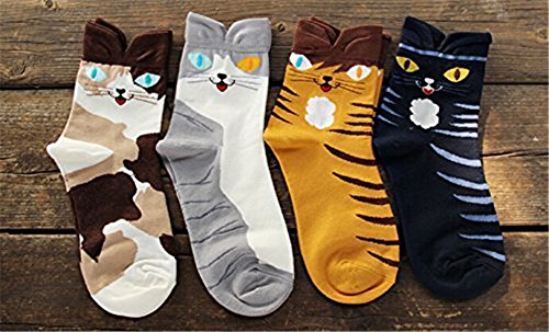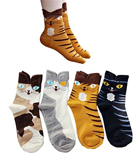 -. Title : AnVei-Nao Womens Girls Cartoon Cute Cat Pattern Cotton Soft Crew Socks 4 Pairs